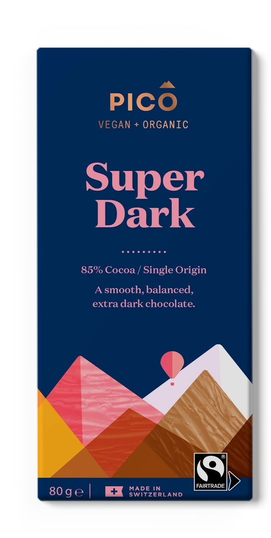 This product is Swiss Made, Fairtrade, organic, Low GI, vegan, soy and gluten free. 85% cacao.