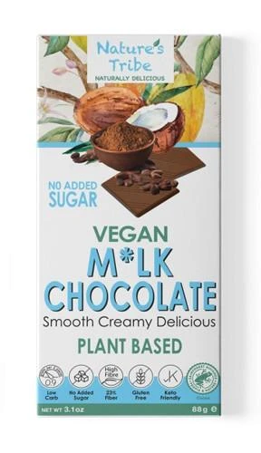 Nature’s Tribe 32% Cocoa Mylk Chocolate is made with natural coconut milk! Sweetened with low carb, keto friendly erythritol & stevia. Plus it’s made from sustainably sourced cocoa. 88g