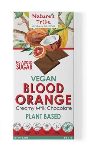 Nature’s Tribe 32% Cocoa Blood Orange Mylk Chocolate is made with natural coconut milk. Sweetened with low carb, keto friendly erythritol & stevia. Plus it’s made from sustainably sourced cocoa. 88g